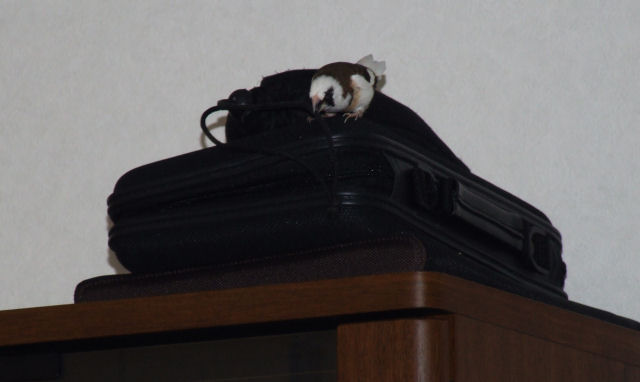 そやさかい、文鳥たちの巣に忍び込んで巣材を失敬して巣作りにいそしんでますのや。危ない事なんかおまへんで。ヤツラとろいさかいな。追い掛けられたってチョロいもんですがな。