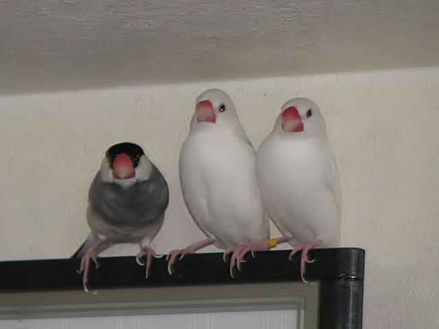 実際は、サウスちゃんが一番小柄で可愛い♀文鳥です。上手に、何気なく背伸びしてますね。