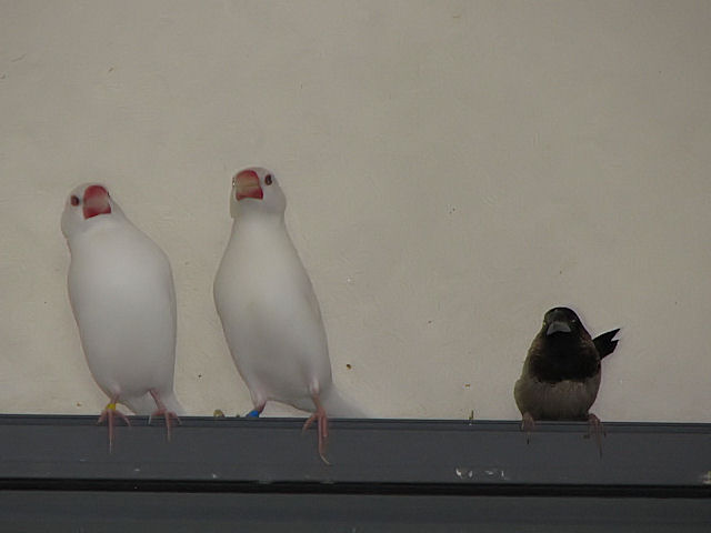 昨日に続いて文鳥たち+αの背比べ。