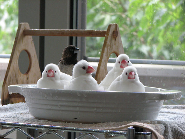 トノ「いつも僕たちの水しぶき浴びをしてるのに、失礼な十姉妹だじょ」