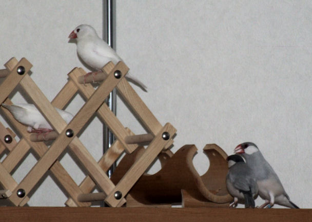 ルートとループは、まだ警戒してるみたいです。しー&トノは、銀文たちがじゃましに来ないので、ゴキゲンで遊んでいるみたいです。