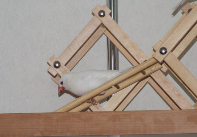 バードアスレチックスの標準の配置だと傾斜が急すぎて文鳥のが遊ぶのは無理ですが、この角度ならOKです。