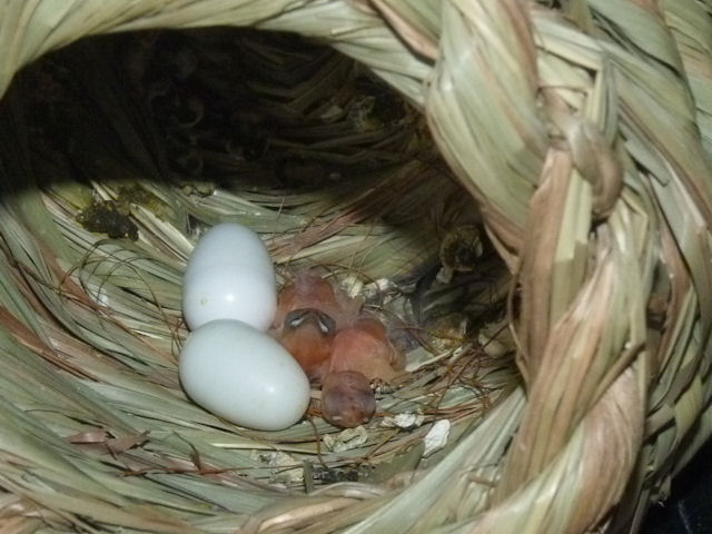 十姉妹たちのヒナが生まれました。二羽です。