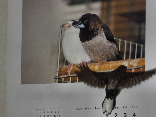 毎年作っている我が家の文鳥カレンダー。月によっては、十姉妹たちの写真も混ぜてあります。