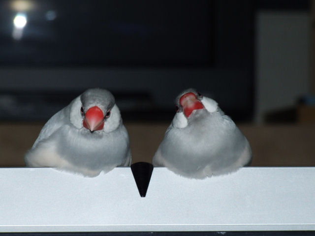 最近、ルート&ループは放鳥時間中に眠くなると、眠い眠い光線を発射する技を覚えた。私がいつも座っているPCの画面の上に止まってかくの如くウトウトし始めるのです。