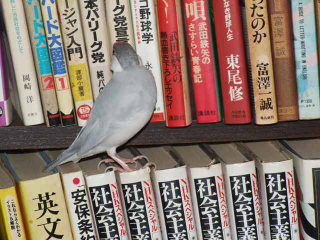 2006-03-14 22:32:00 [00171] ループちゃんの本棚探訪(1) カテゴリ:[ 旧blog記事 ] 文鳥にも教養が必要よね。どの本を読もうかしら… comments(2) COMMENTS 2006-03-16 12:46:00 Re:ループちゃんの本棚探訪(1) (ハミリン) 先日は、文鳥日記にコメントありがとうございます。ループちゃん、まるで字が読めるみたいですね。一生懸命な後姿可愛いです。(*^▽^*)HPのトップページには意表をつかれました。とても面白かったです。可愛い写真満載で、私も骨抜きにされました。(笑) 2006-03-19 21:22:00 Re:ループちゃんの本棚探訪(1) (bko) ハミリンさん、いらっしゃいませ。コメントにもなかなかお返事しない怠慢管理人ですm(_ _)m管理人は怠慢なので、可愛い文ちゃんたちだけを頼りに更新してます (^_^;)また、お暇があったらお寄りください。 編集パスワード: Post A Comment お名前(*) メールアドレス (非公開) タイトル(*) コメント(*) 編集パスワード(*) (*)の項目は必須項目です お名前とメールアドレスをクライアントに記憶する コメントを投稿する場合は、Javascriptを有効にする必要があります。このメッセージが見えている場合は、Javascriptは無効になっています。コメント投稿ができません。