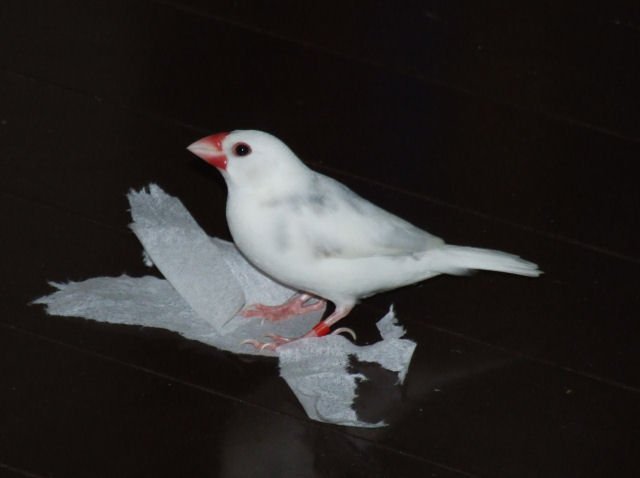 ティッシュは文ちゃんの巣材として大人気。ルートなどは、常時ティッシュ強奪を狙っている。