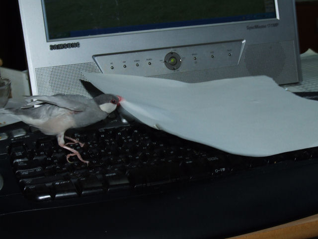 A4の紙をくわえて飛べるはずもなく、プリンタ用紙同様、部屋の中に撒き散らかしてくれます。