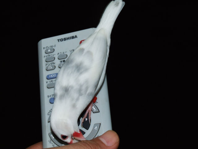 最近、僕がリモコンを使っていると、ハツちゃんが飛んできてご覧の様にリモコンをつつき始めます。
