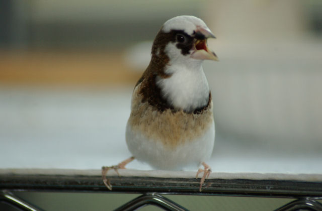 「うるせえぞ、文鳥ども」とでも言っているような表情です。