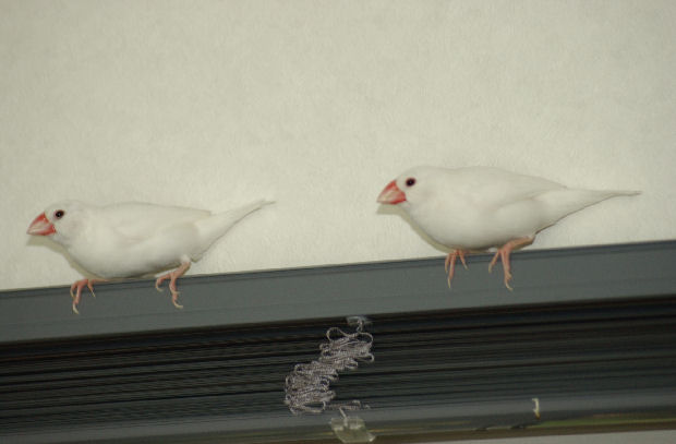 止まり木でも付けてあげたいところですが、この細いスペースに乗って、ブラインドをイタズラするのを日課にしているルートもいる訳で(^_^;)、このままでもいいかな、なんて思ってます。