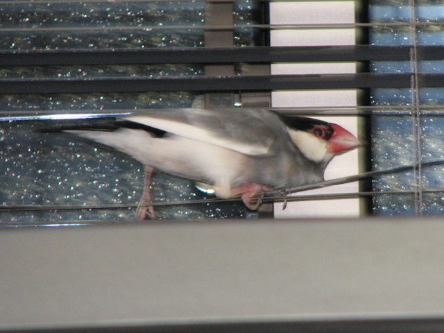 ブラインドに飛び乗るポン