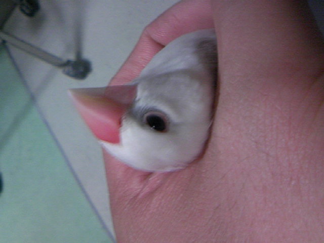 握り文鳥したついでに、真上から写真を撮影してあげようと思ったのですが、コナン的には意地でもカメラ目線したいらしく、こういう写真しか撮れませんでした。