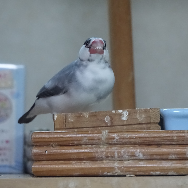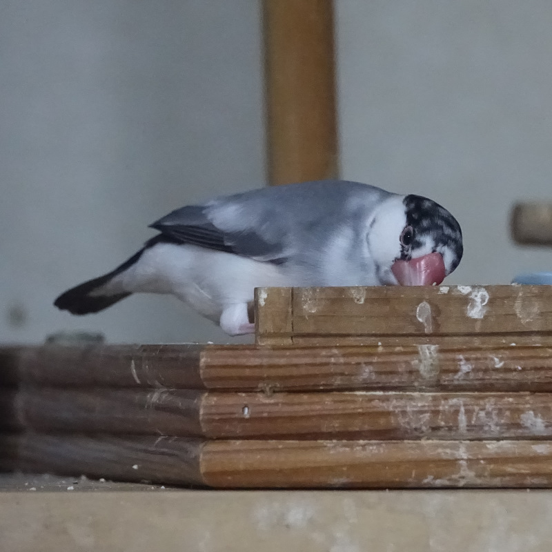 以前買ったのか貰ったのか分からない巣材が余っていたので、抱卵中の子が使うかな?と思ってバードアスレチックに置いてみた。